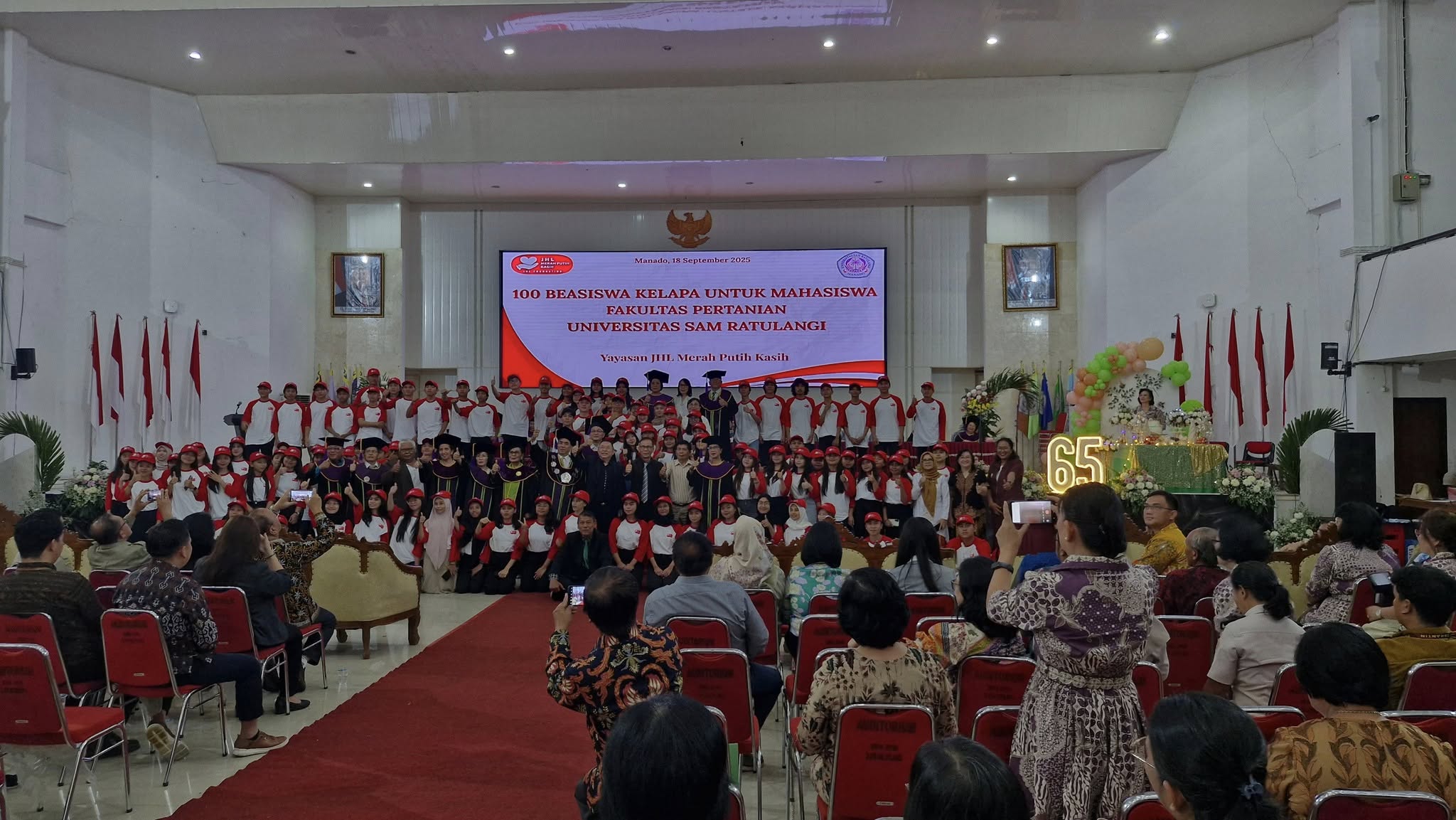 Penyerahan 100 Beasiswa Kelapa untuk Mahasiswa Faperta Unsrat oleh:Yayasa JHL Merah Putih Kasih