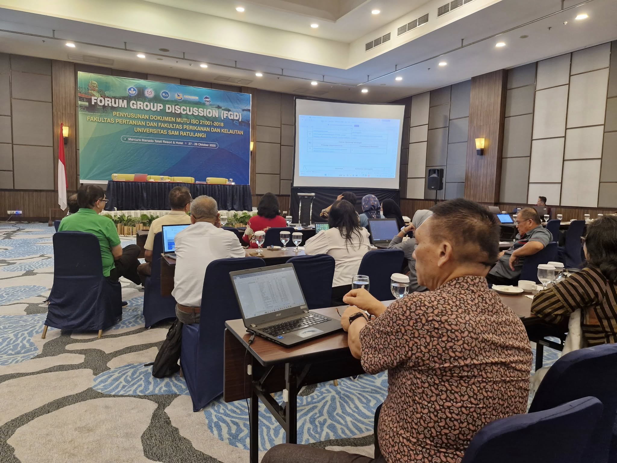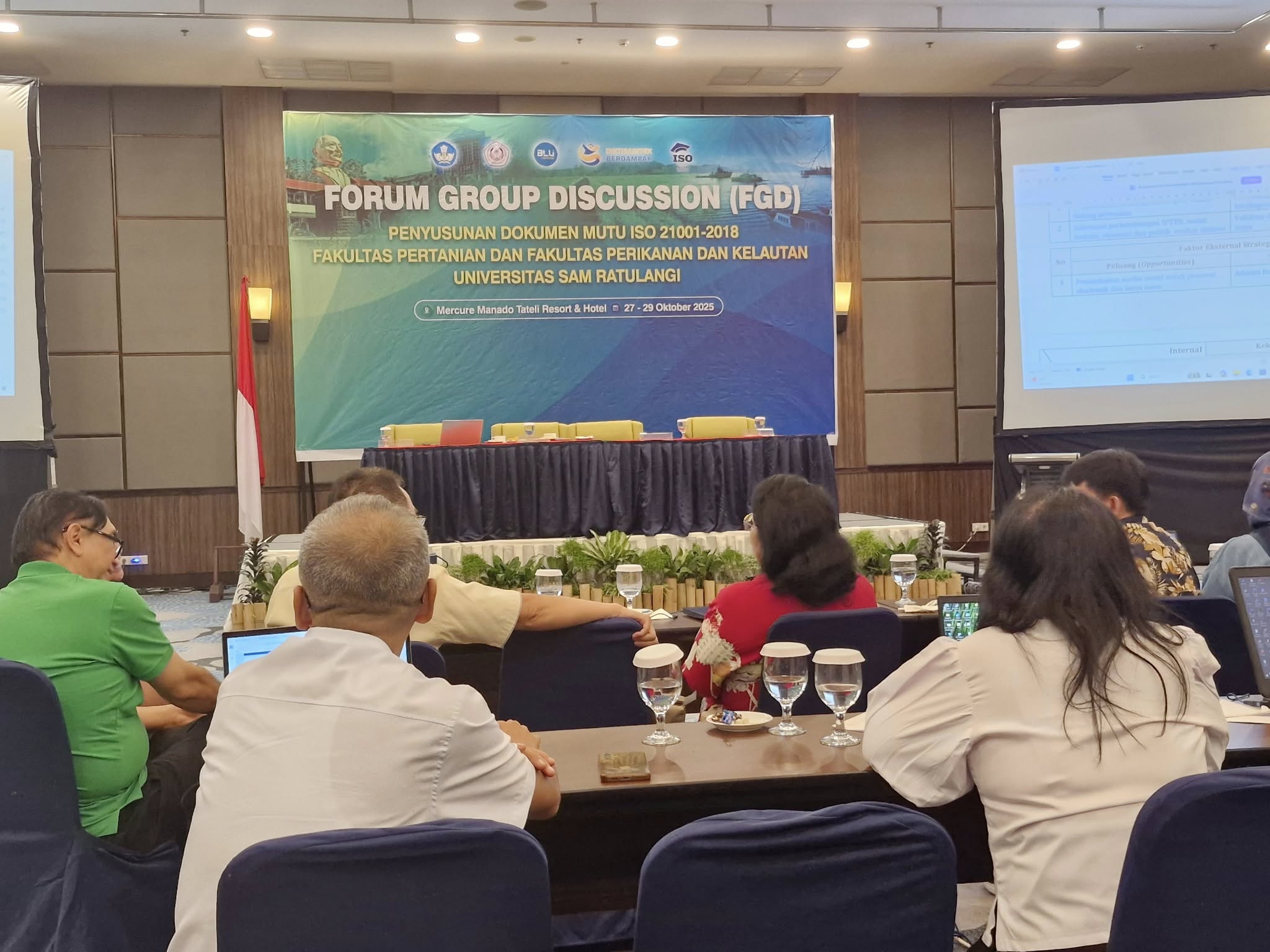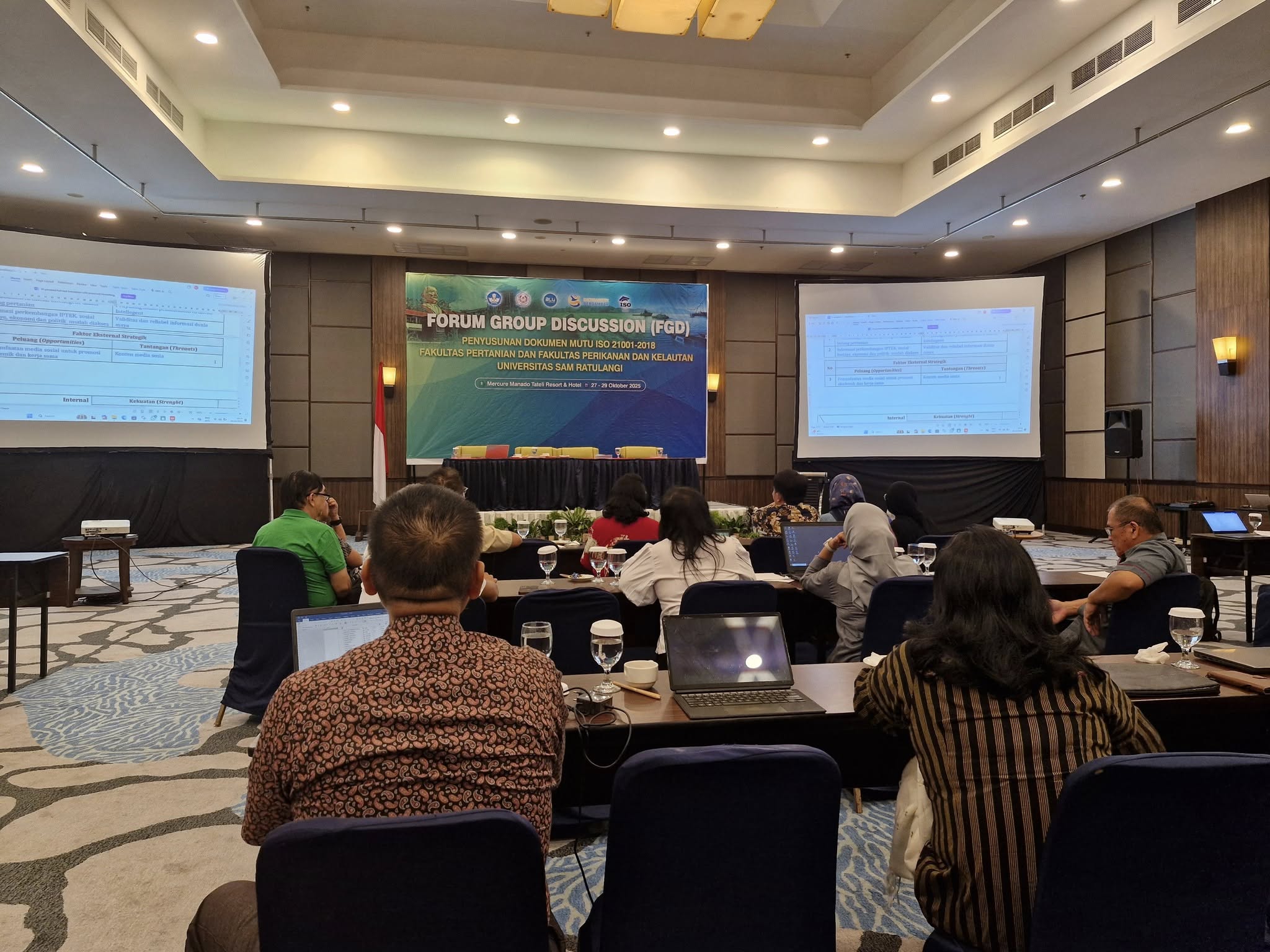 Hari ke-2 FGD Penyusunan Dokumen Mutu ISO 21001-2018 Fakultas Pertanian dan Fakultas Perikanan & Kelautan Unsrat 27-29 Oktober 2025 di Manado Tateli Resort and Convention.
