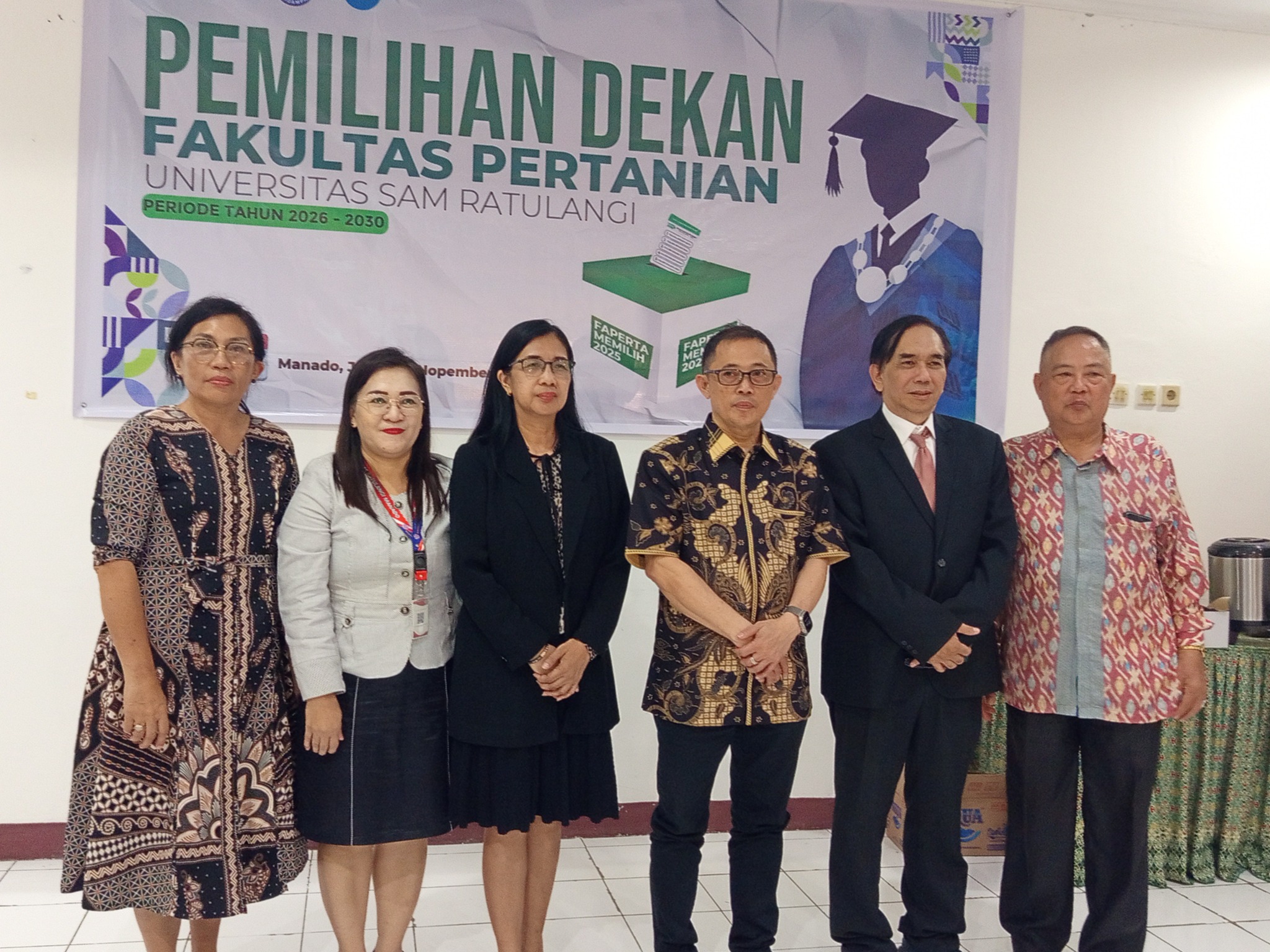 Pemilihan Dekan Fakultas Pertanian UNSRAT Periode 2026-2030 Posted on November 21, 2025November 28, 2025 By unsrat Selamat kepada Ir. Dedie Tooy, MSi, PhD. terpilih sebagai Dekan Fakultas Pertanian UNSRAT Periode 2026-2030 Berita, Kegiatan, Materi, Pengumuman
