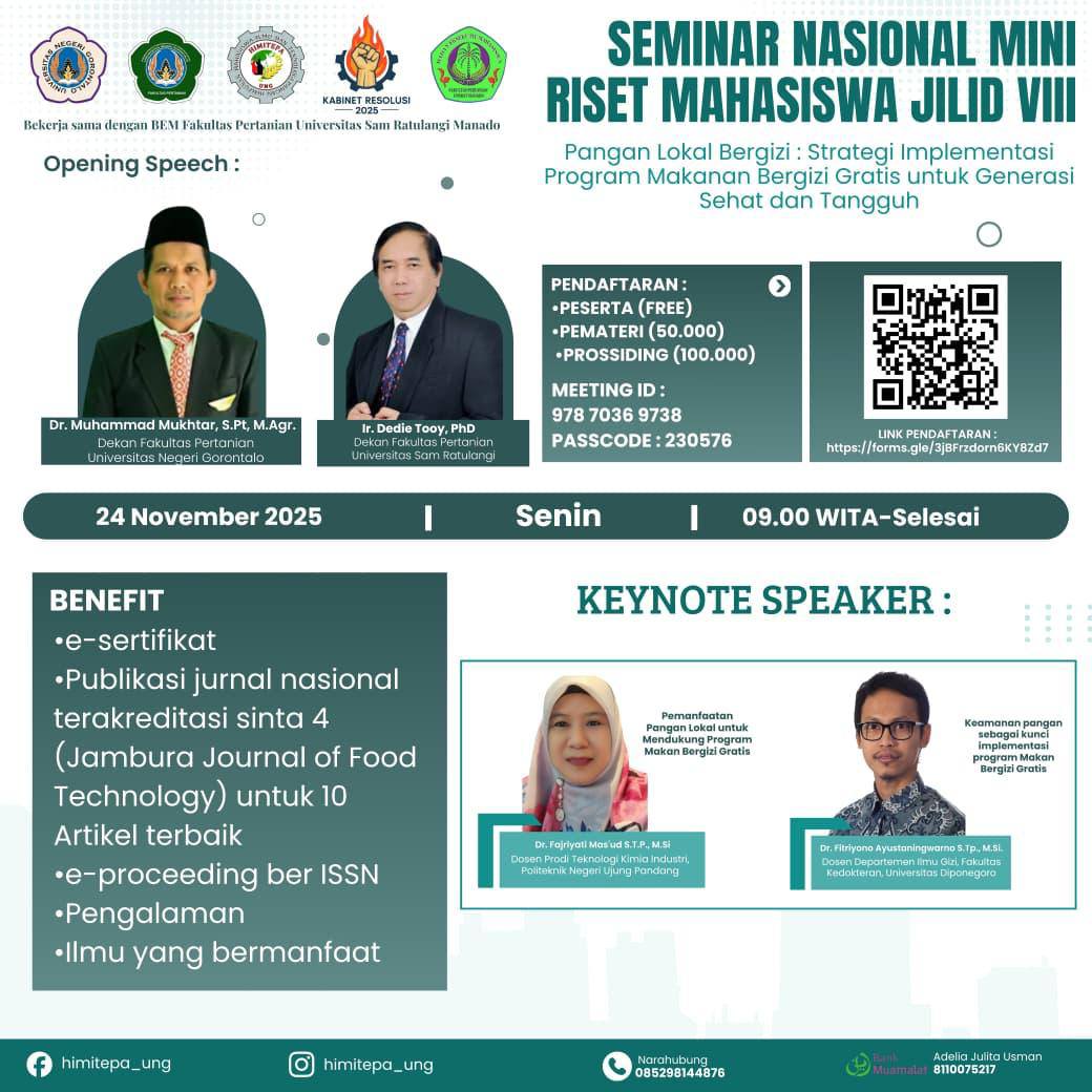• Seminar Nasional Mahasiswa, Kerjasama Fakultas Pertanian Unsrat dan Fakultas Pertanian UNG Gorontalo 24 November 2025